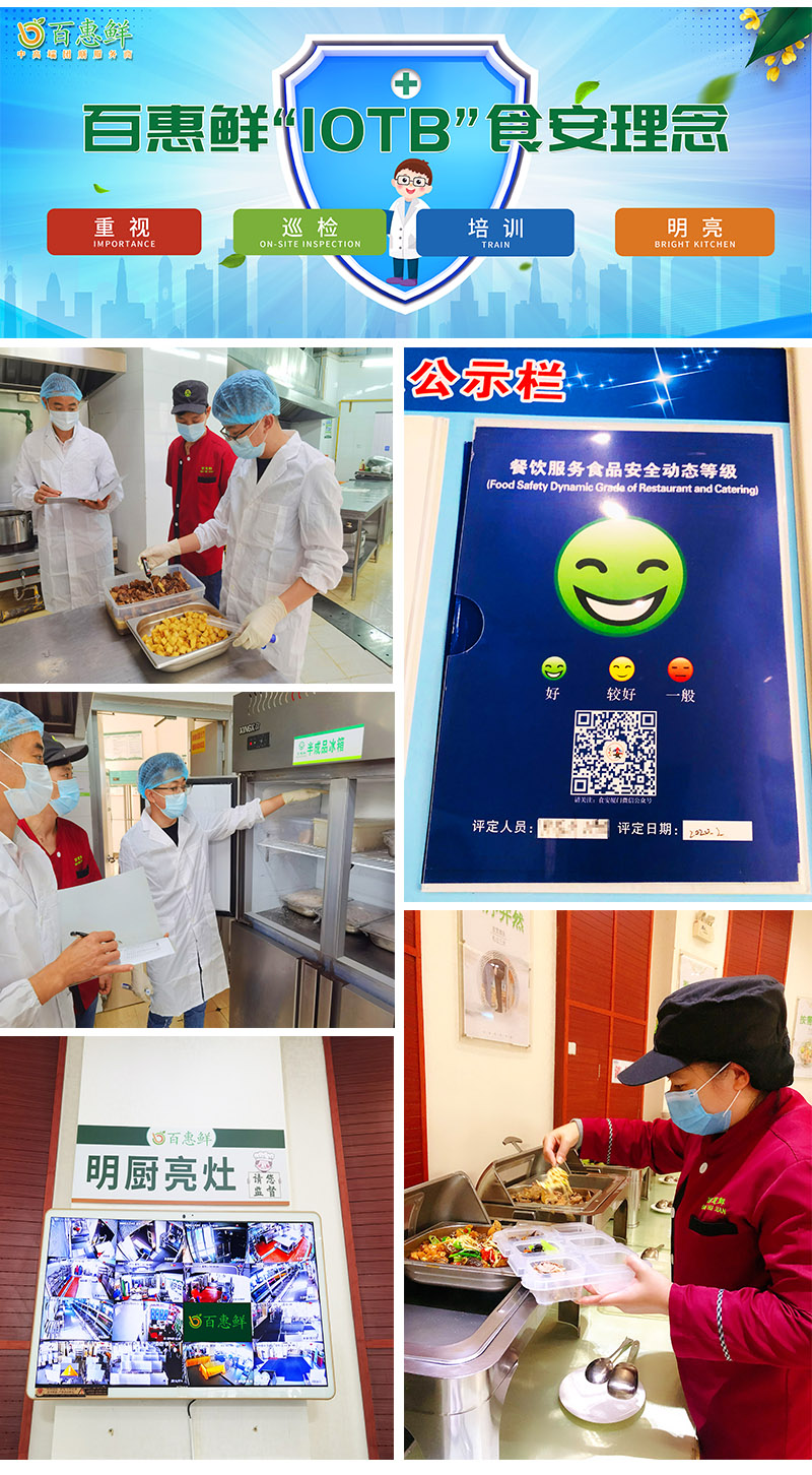 食材檢測、食品留樣、明廚亮灶、培訓考核四重保障作為當?shù)厥袌霰O(jiān)督局評定的食品安全A級食堂,該機關食堂在食品安全上實行高標準制度,百惠鮮食安專員每天定期進行廚房衛(wèi)生巡檢,對當天要用的肉類、蔬菜、海鮮等食材進行抽檢,開餐前及時進行菜品留樣操作,保證食品安全及溯源渠道;食堂團隊成員定期接受食安培訓和考核,合格方可上崗。疫情期間,每日餐廳消毒、查體溫、嚴格記錄每日食材的來源,并全部公開透明化,供大家監(jiān)督。