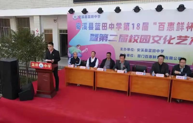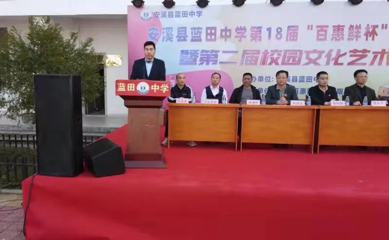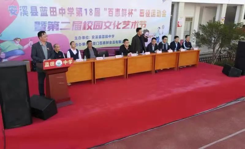 2021年12月09日,由廈門百惠鮮食品有限公司傾情贊助,以“譜寫生命之歌  弘揚運動精神”為主題的安溪縣藍田中學(xué)第18屆“百惠鮮杯”田徑運動會暨第二屆校園文化藝術(shù)節(jié)在藍田中學(xué)操場盛大舉行。開幕式典禮由藍田中學(xué)校長池國益主持!